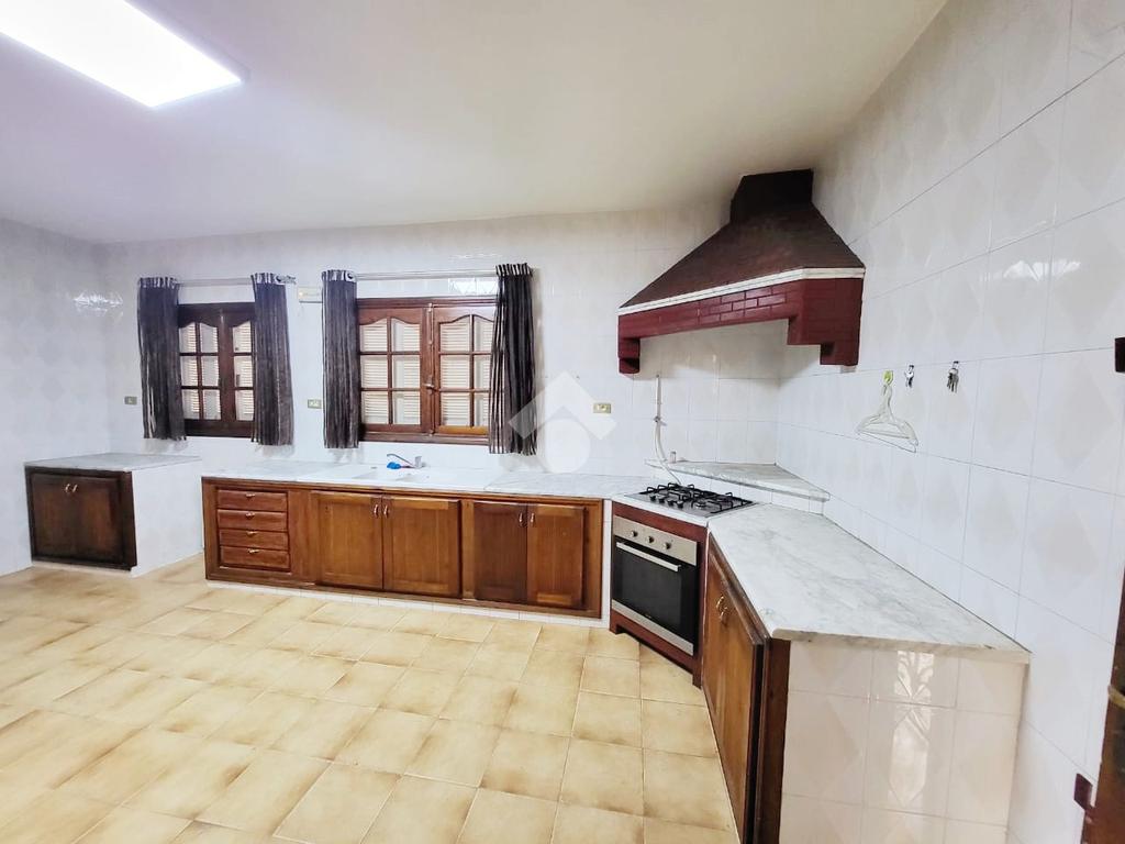 La cuisine est aménagée et équipée par une plaque de cuisson, une hotte aspirante et un four électrique en plus un coin repas. Elle est complétée par une terrasse.
